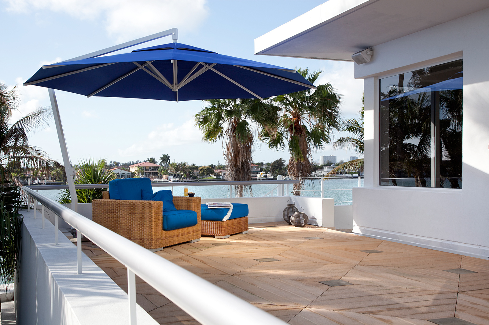Der Mast von Amalfi ist seitlich versetzt, so kann der gesamte Platz unter dem Schirm genutzt werden.