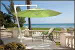 Geöffnet wird der Seitenmastschirm per Kurbelmechanismus. Die Besonderheit: die leichtgängige Seilwinde ist selbsthemmend und hält das Schirmdach in jeder Position sicher fest.