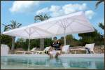 Die praktische Aufstellhilfe erleichtert das Aufrichten des Schirms erheblich.